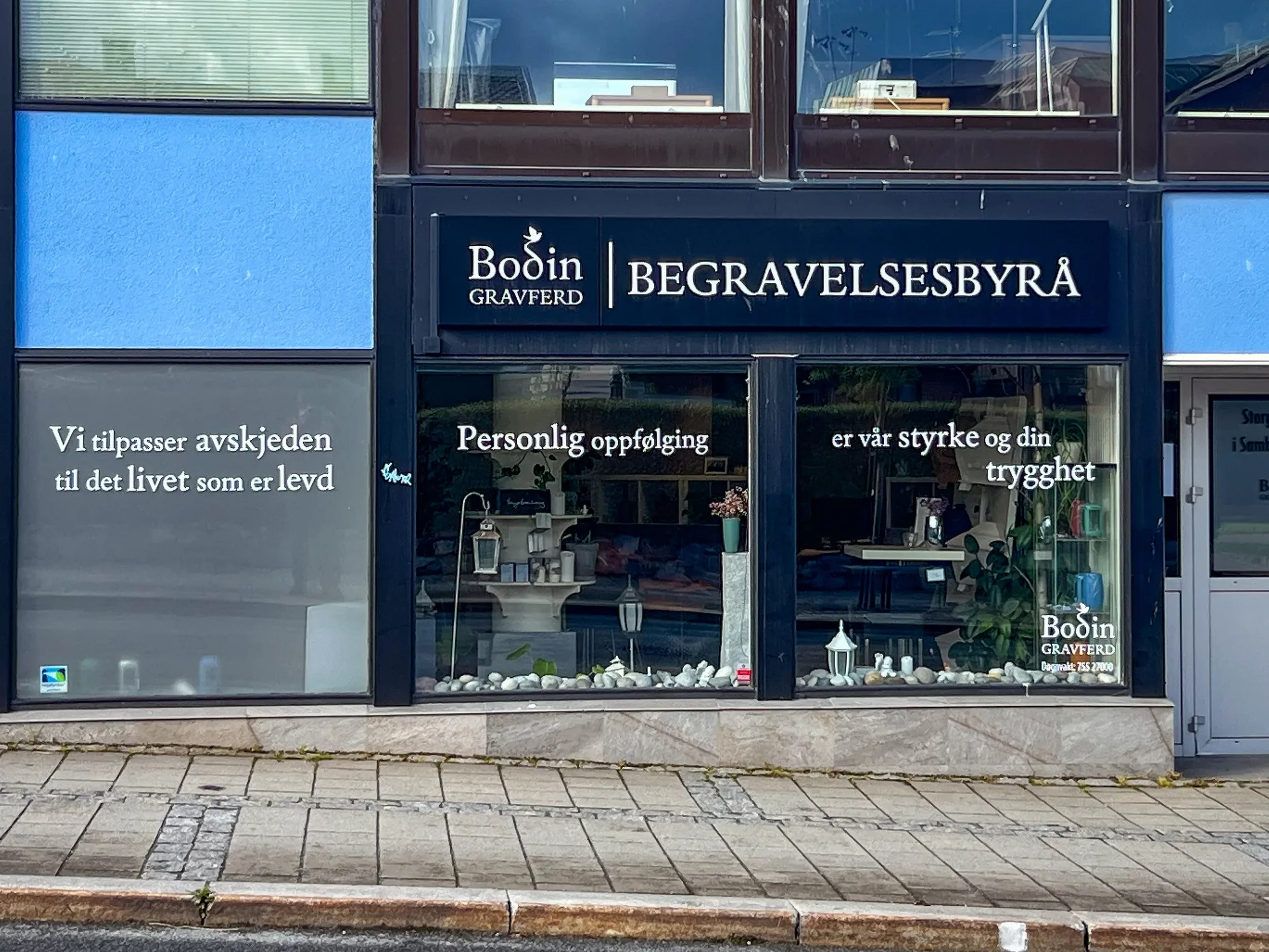 LETT TILGJENGELIG: Bodin Gravferd finner du midt i sentrum, Storgata 48 med inngang fra Bankgata.